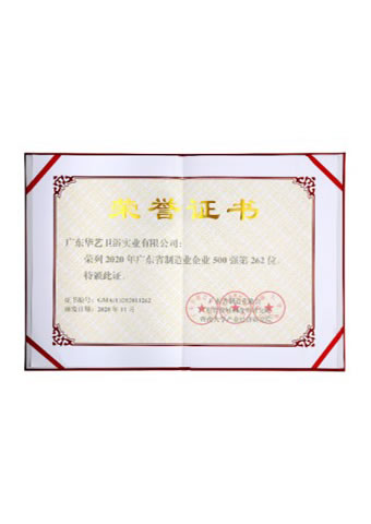 2020年廣東省制造業(yè)企業(yè)500強(qiáng)第262位